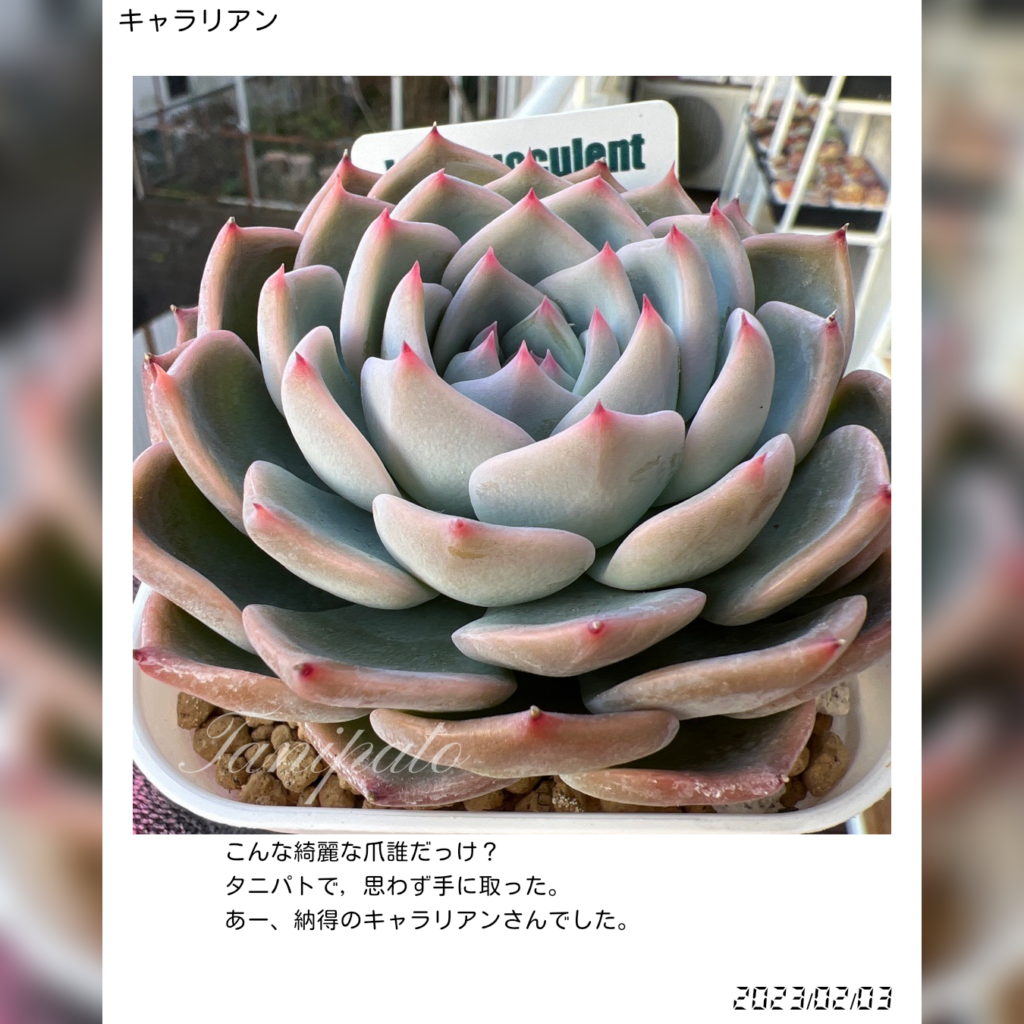 キャラリアンの持つ華やかさと育てやすさは、多肉植物愛好家にとって非常に魅力的です。大切に育てることで、その美しさを長く楽しむことができます!