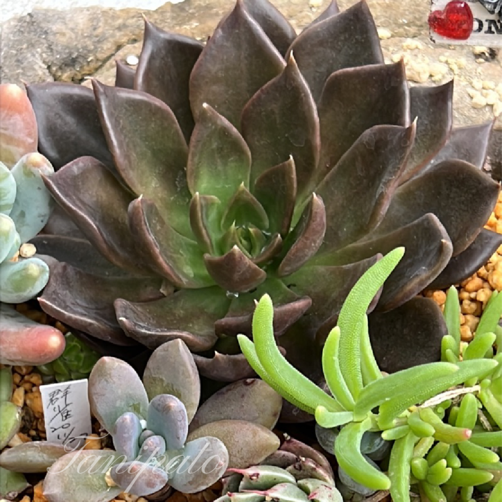 濃い色合いの葉が特徴のエケベリアで、冬の寒さでより色づきが増します。