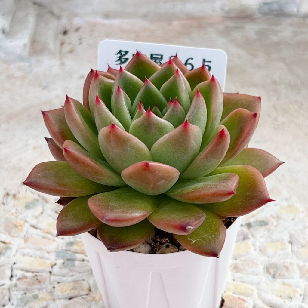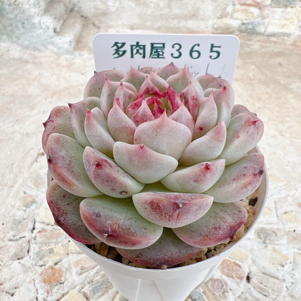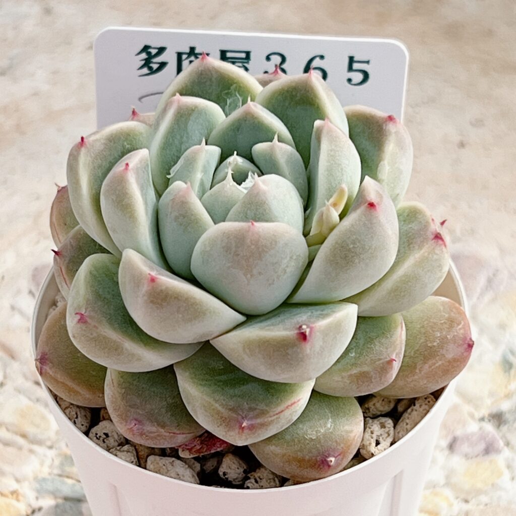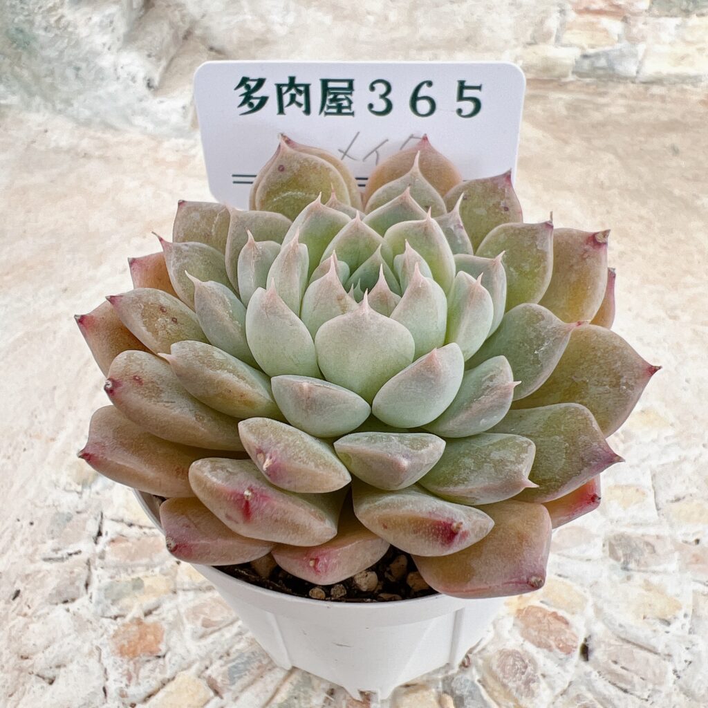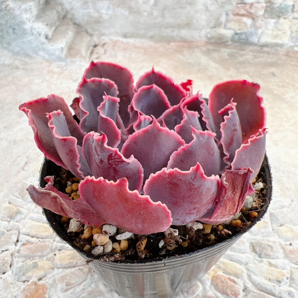 ロゼットの形は整いやすく、葉がきれいに重なり合うため、上から見るとバランスの取れた美しいフォルムを楽しめます。小ぶりながらも存在感があり、単体で飾っても、寄せ植えのアクセントとしても映える品種です。