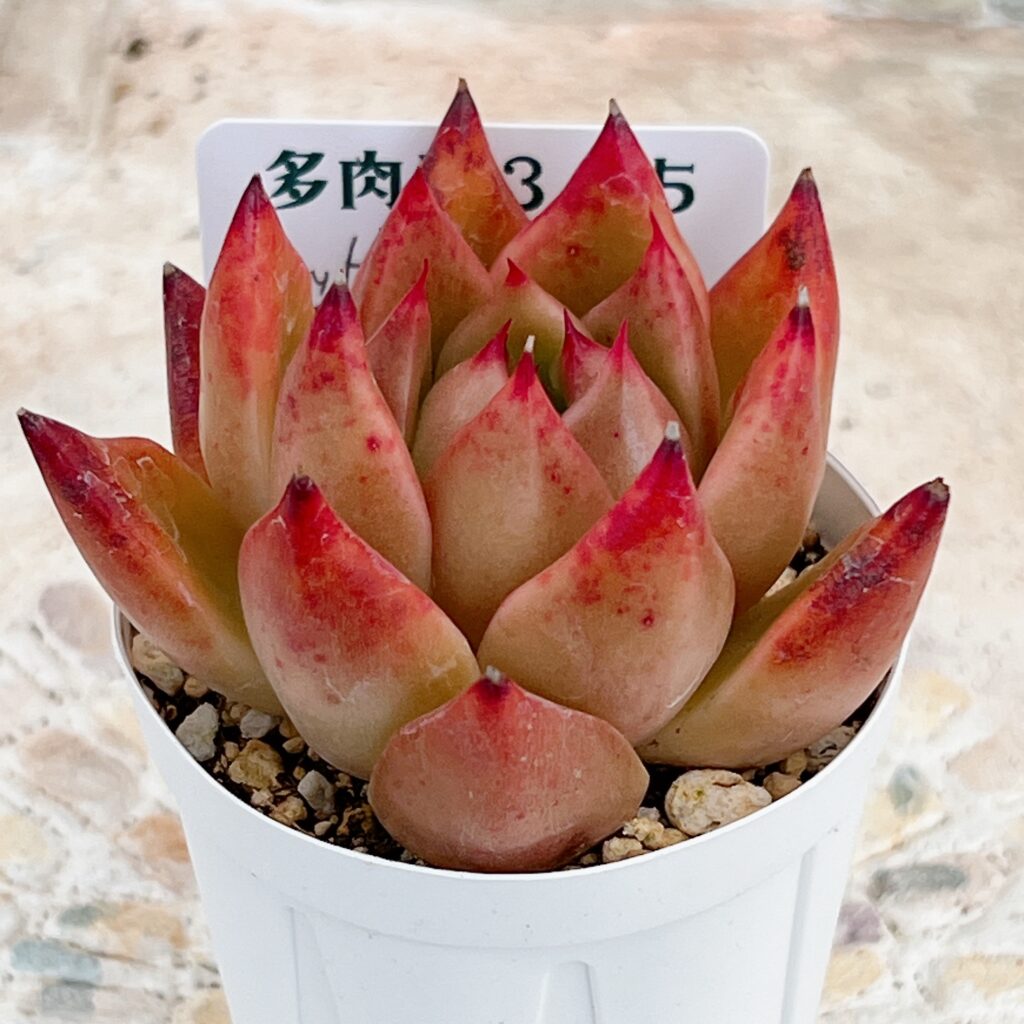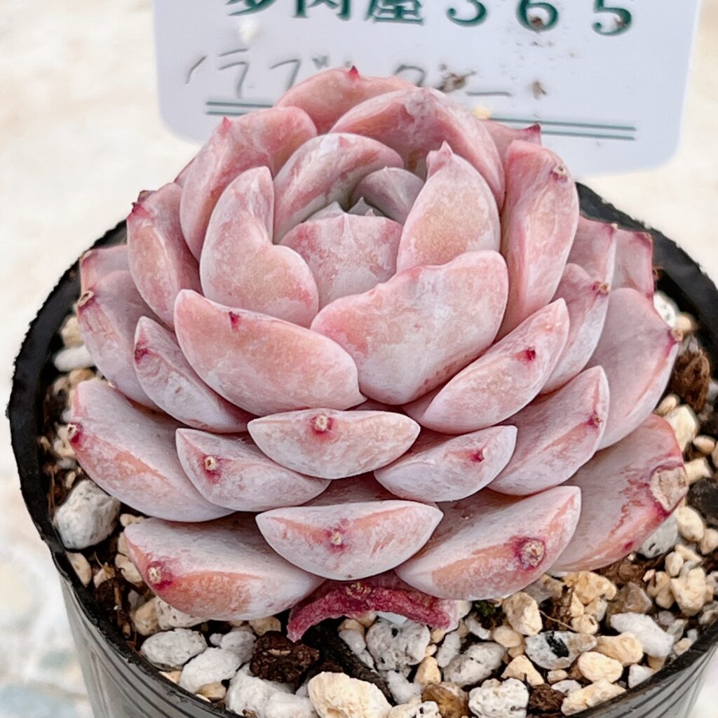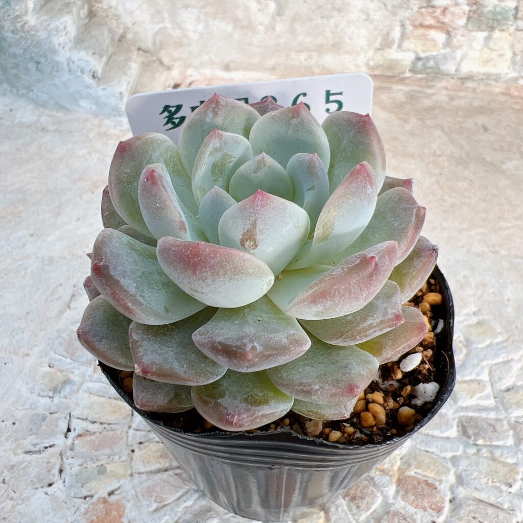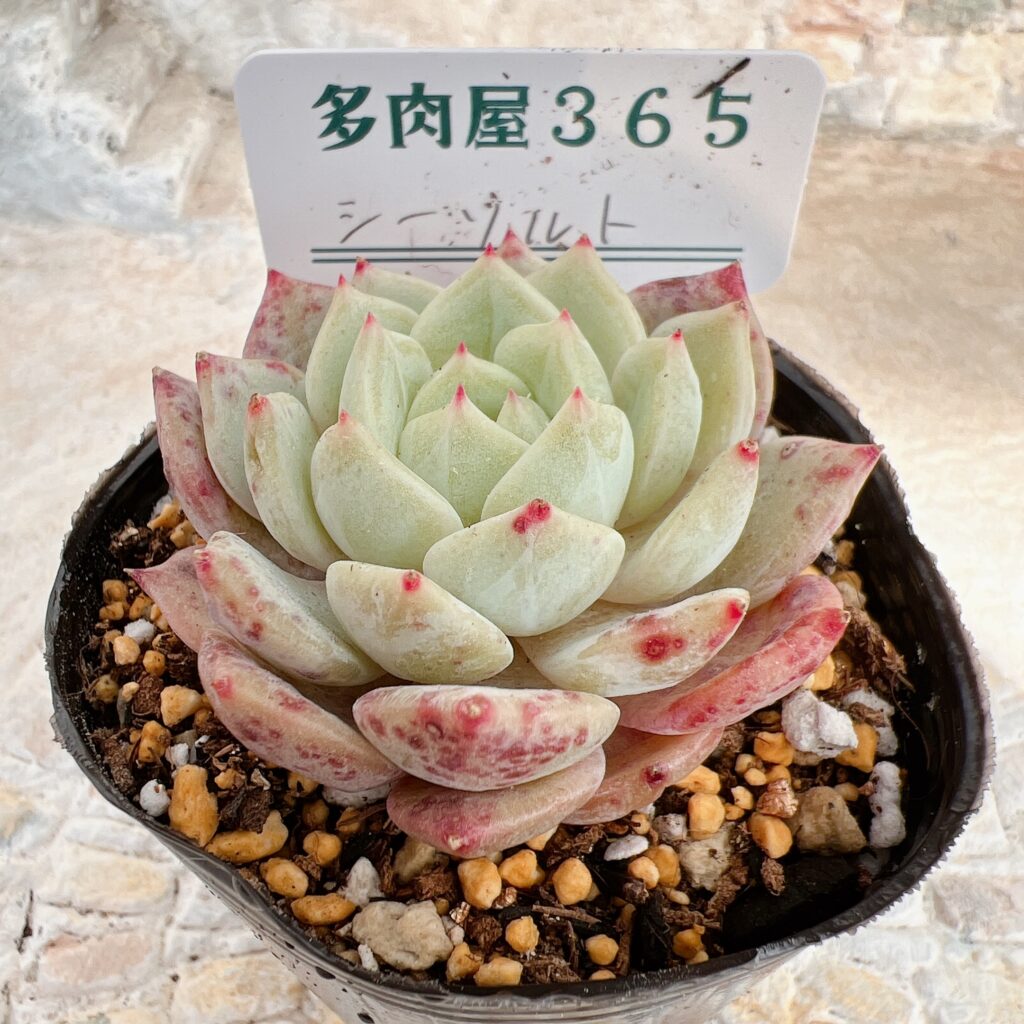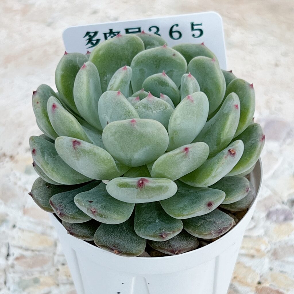 ロゼットの形は整いやすく、葉がきれいに重なり合うため、上から見るとバランスの取れた美しいフォルムを楽しめます。小ぶりながらも存在感があり、単体で飾っても、寄せ植えのアクセントとしても映える品種です。