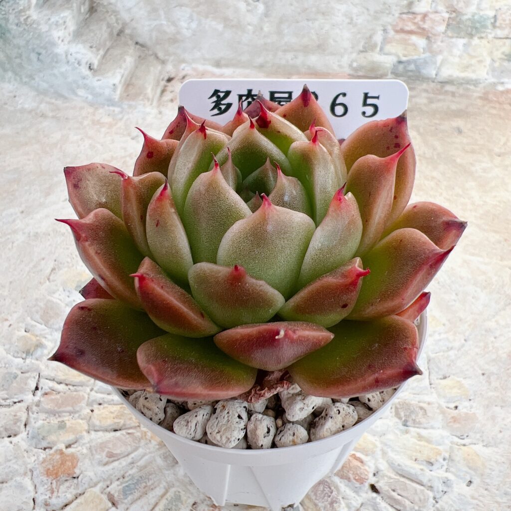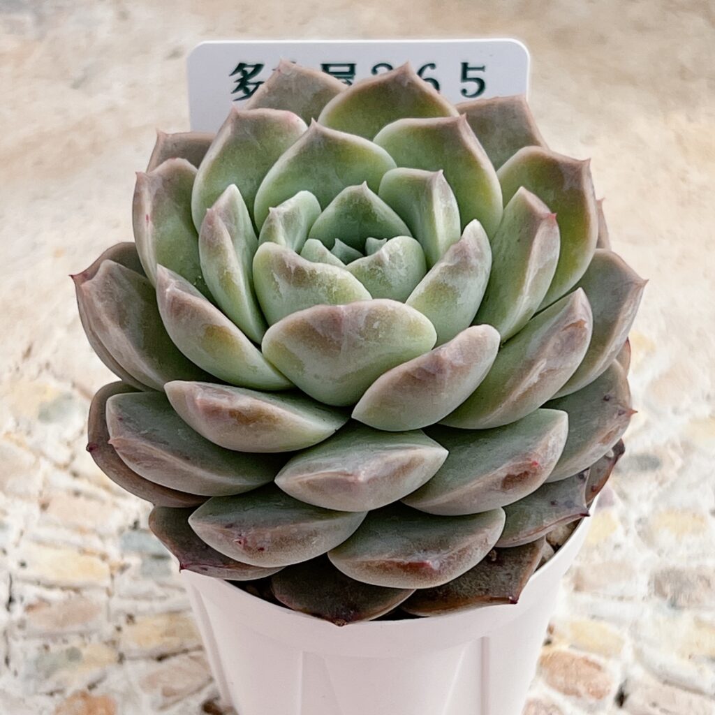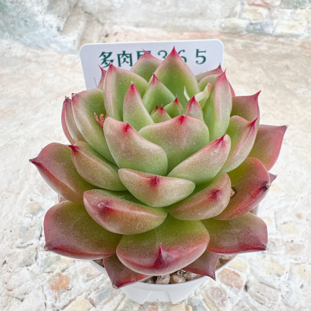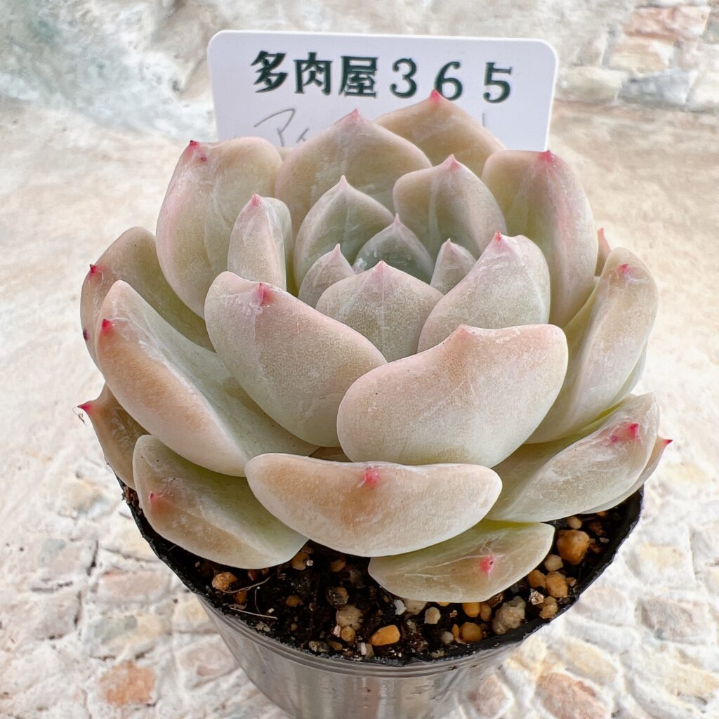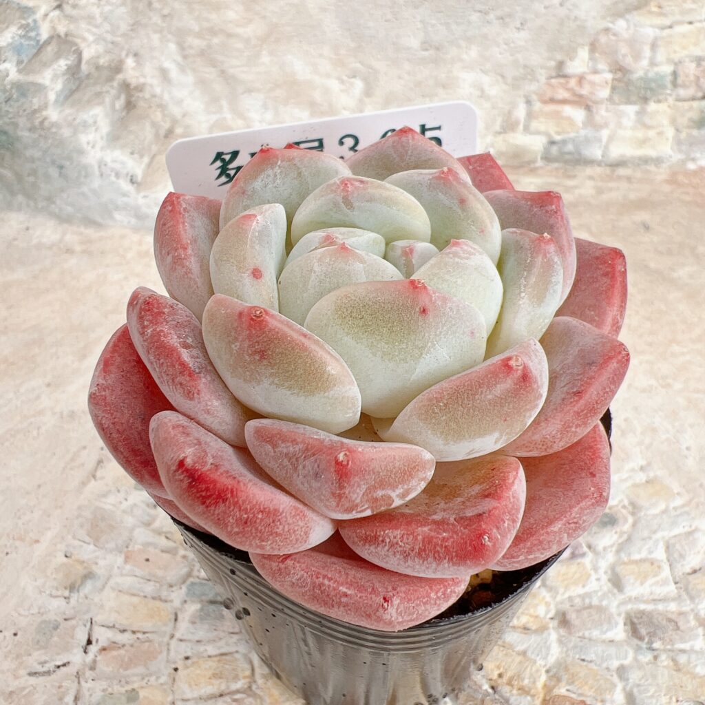 ロゼットの形は整いやすく、葉がきれいに重なり合うため、上から見るとバランスの取れた美しいフォルムを楽しめます。小ぶりながらも存在感があり、単体で飾っても、寄せ植えのアクセントとしても映える品種です。