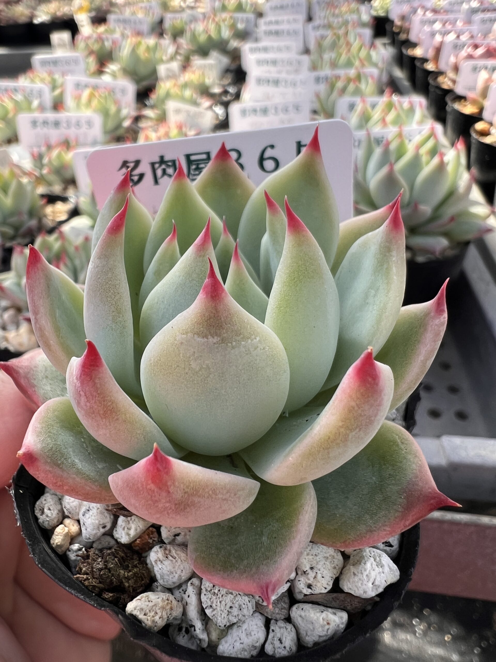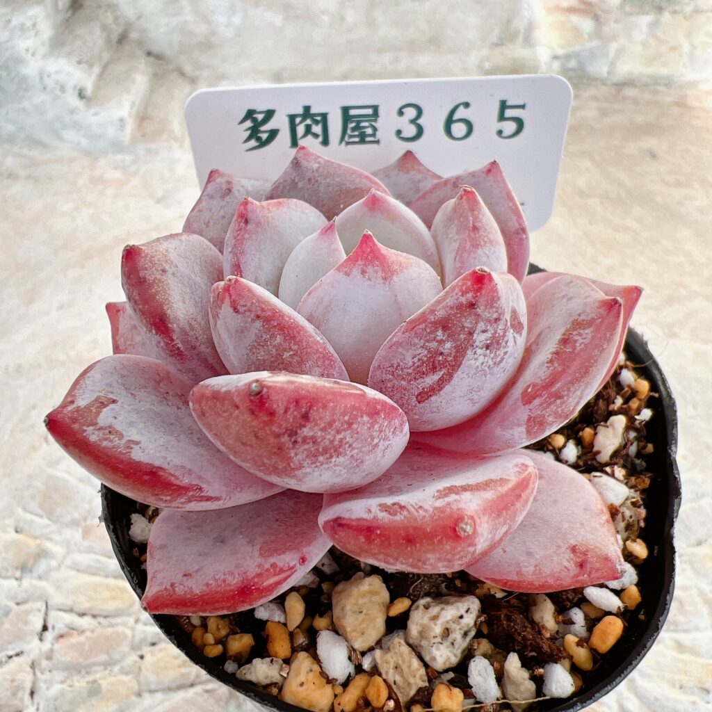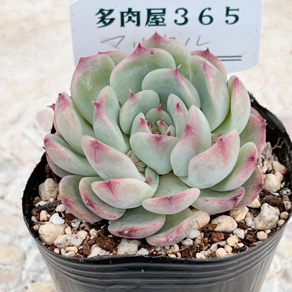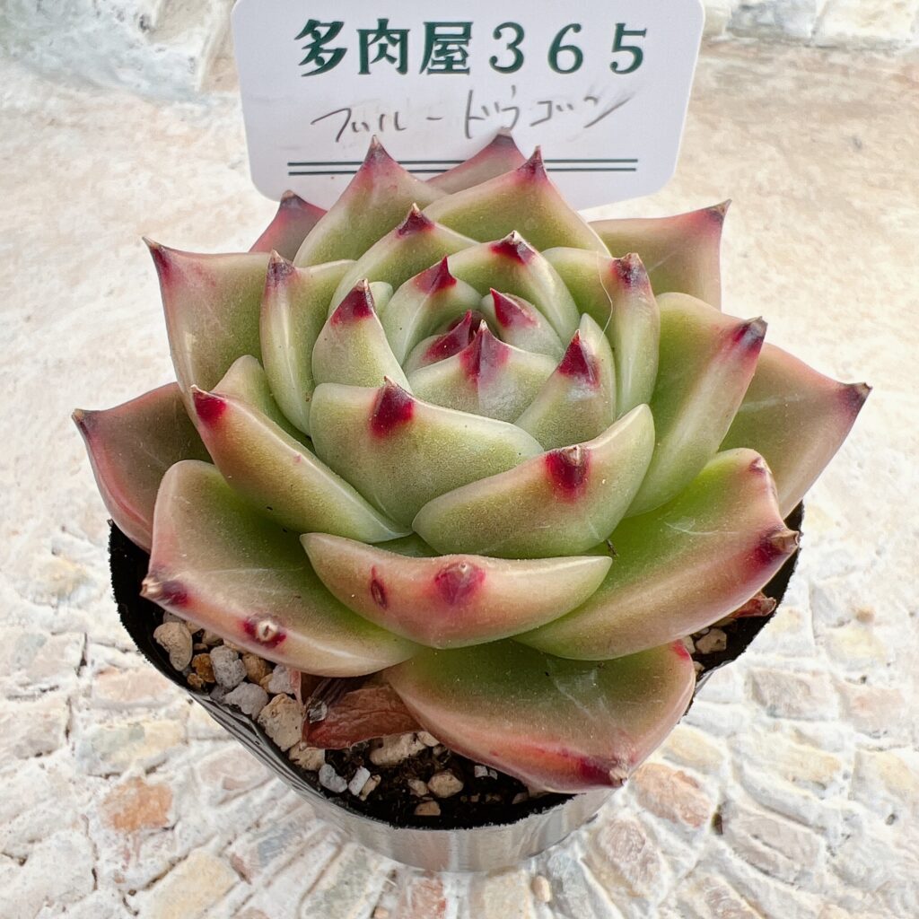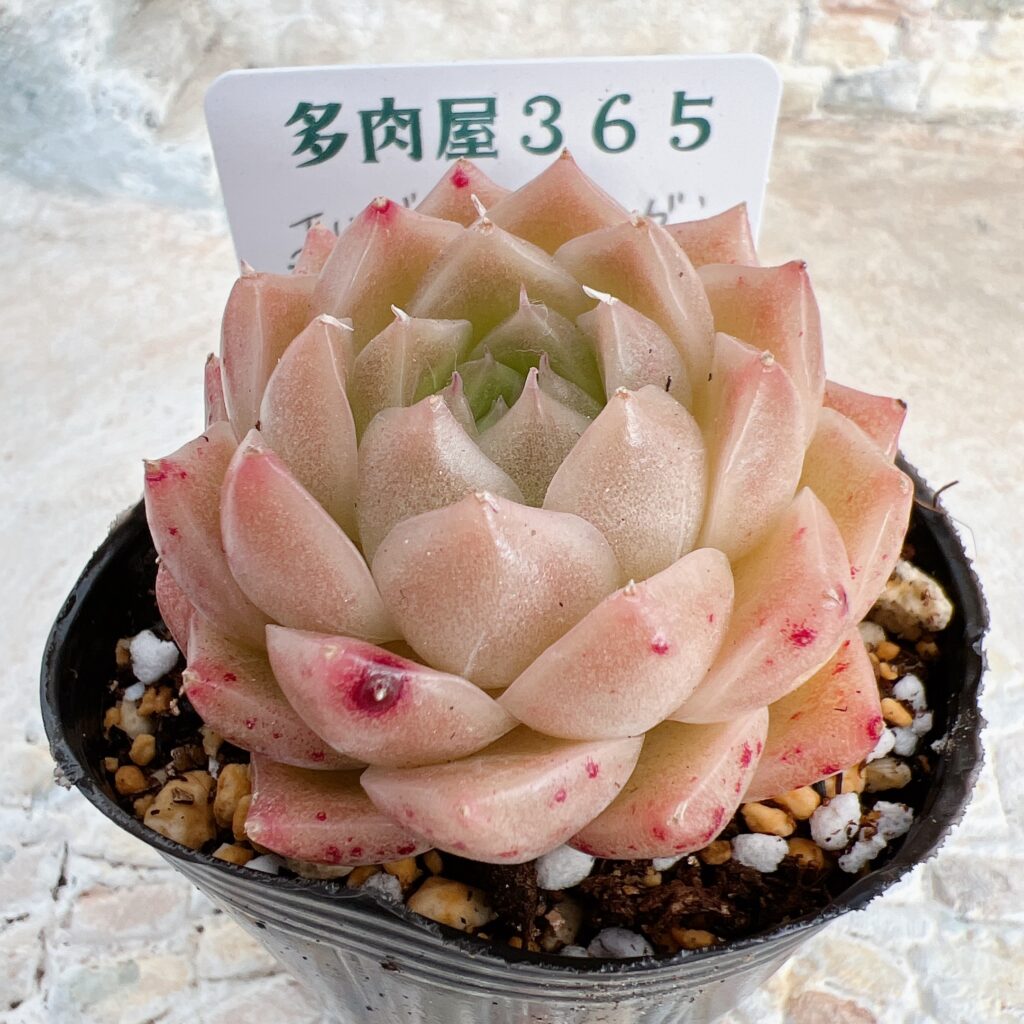 ロゼットの形は整いやすく、葉がきれいに重なり合うため、上から見るとバランスの取れた美しいフォルムを楽しめます。小ぶりながらも存在感があり、単体で飾っても、寄せ植えのアクセントとしても映える品種です。