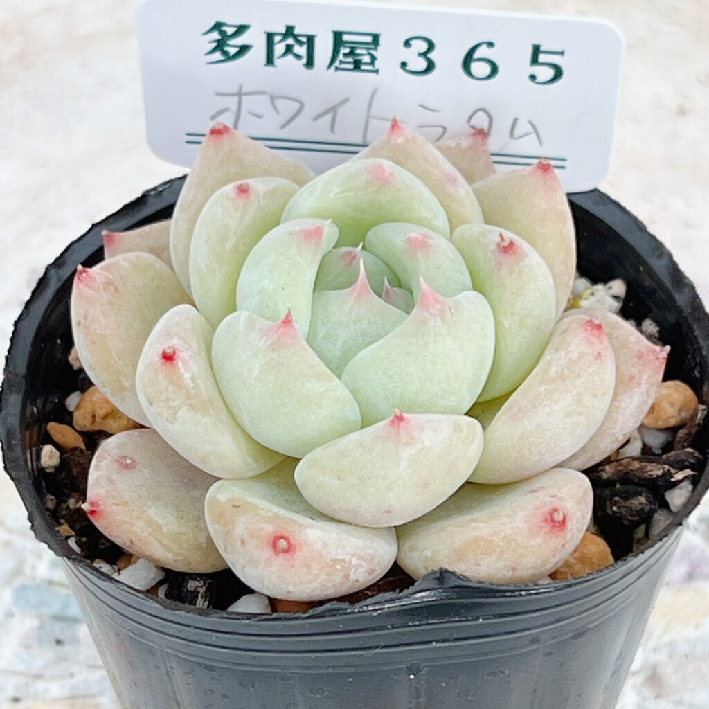 「ホワイトファット」は、ふっくらとした葉と繊細な紅葉が魅力のエケベリア属の多肉植物です。上品な白粉をまとった葉が密に詰まり、美しいロゼットを形成します。
